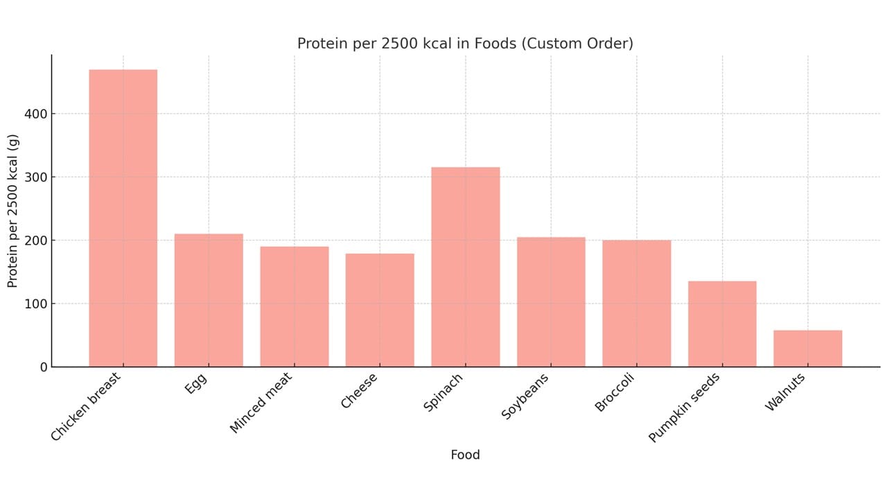 People often think binary about high protein foods: they think that a food either has a lot of protein, or that it doesn’t. The truth is that almost all whole foods contain some protein and that adds up over the day. A telling example is that in a double sandwich with an egg, there is more protein in the bread than in the egg. Also, nutrition tables are often calculated per 100 gram of product, sometimes per serving size. But what counts for the body is how much protein a food contains per unit of energy because the daily energy budget is what counts. Per calorie, broccoli or spinach contain similar amounts of protein to ground beef for example. You would need a lot of it, but every calorie of ground beef that is swapped for spinach actually increases protein intake.